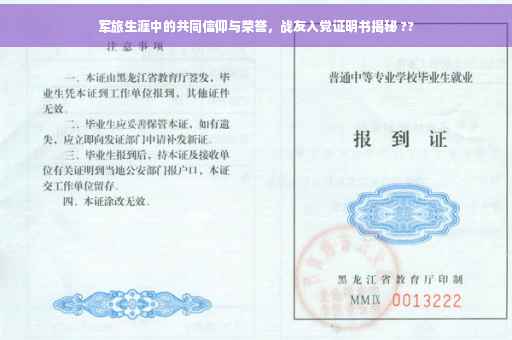 入党战友证明书,是军队中一份承载着深厚友谊与共同经历的文书,此证明书不仅见证了两位或多位战友在同一时期、同一部队入党的重要时刻,更体现了他们共同经历过严格的军事训练和艰苦的战场环境,这份证明书,实质上是对战友间深厚友谊、共同信仰与荣誉的肯定。