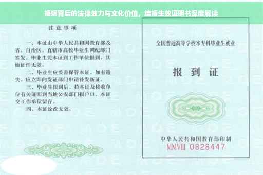 结婚生效证明书不仅是现代法律的产物,也承载着传统文化的精神内涵,在中国传统文化中,婚姻被视为家族延续、传承的重要仪式,结婚生效证明书的出现,将传统文化的价值观融入现代法律体系,实现了传统文化的传承与弘扬。