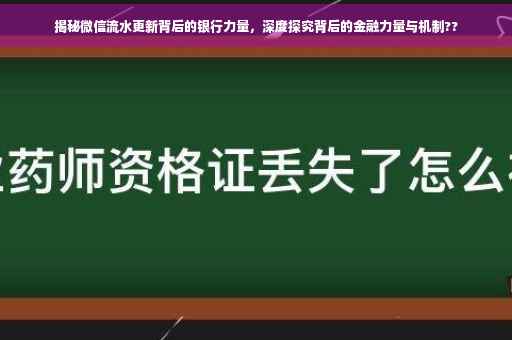 随着移动互联网的普及和数字化时代的到来,微信已经成为人们日常生活中不可或缺的社交工具和支付平台,微信流水作为个人或企业经济活动的记录,在办理贷款、信用卡等金融业务时起到了关键作用,本文将深入探讨哪些银行提供更新微信流水的服务,解析背后的原因,并帮助你更好地利用微信流水办理金融业务。