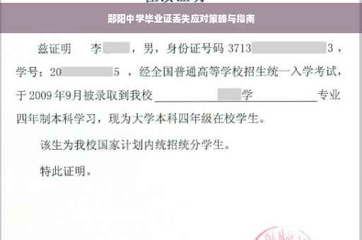 在日常工作和生活中,丢失证件是常见的情况,对于毕业生而言,丢失毕业证无疑会带来诸多不便,本文将专门针对郧阳中学毕业证丢失的情况,为大家提供详尽的应对措施和建议。