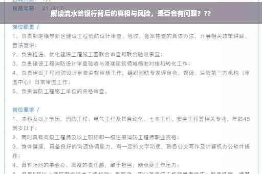 在日常生活中,我们经常会听到关于资金流水的话题,特别是在金融领域,一些人可能会疑惑,将资金流水给银行是否会有问题?这个问题涉及到个人或企业的资金流动与银行之间的关系,以及可能存在的风险,本文将详细解读这一问题背后的真相与风险,帮助读者更好地理解资金流水与银行之间的关联。