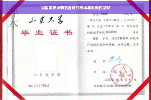 摘要:本文将探讨事假家长证明书的重要性及其背后的故事。这份证明书在请假过程中起着至关重要的作用,它不仅是学校与家长之间沟通的桥梁,更是确保孩子安全、维护教育公平的重要手段。本文将揭示其背后的意义,以及在实际应用中如何发挥其作用,同时分享相关的故事和案例,以展现其重要性。
