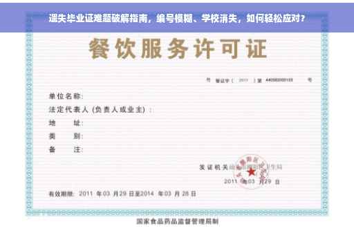 摘要:面对毕业证遗失、编号模糊以及学校消失等难题,不必过于担心!可以通过以下方式解决:尝试联系原学校或相关部门,提供个人信息以确认身份并寻求帮助;前往当地教育部门咨询,获取相关证明文件或指导;如情况特殊,可考虑通过法律途径解决。无论采取何种方式,保持冷静,积极寻求帮助是关键。