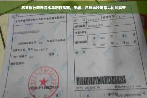 摘要:本文将详细介绍农业银行转账流水单的制作过程,包括步骤、注意事项以及常见问题的解答。读者将了解到如何通过农业银行进行转账操作并生成流水单,以及在制作过程中需要注意的事项,如核对信息、保护账户安全等。文章还将解答一些常见的问题,帮助读者顺利完成转账流水单的制作。