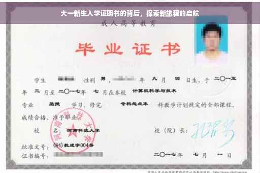 这是一个关于大一新生入学证明书的背后故事探索新的开始通过讲述一个名叫李明的大一新生如何获得入学证明书并迎接新的大学生活的故事向我们展示了一个坚持不懈追逐梦想的过程同时也给我们提供了关于大学学习和生活的建议和启示让我们一同期待他们在未来的日子里能够创造出更加辉煌的成就。