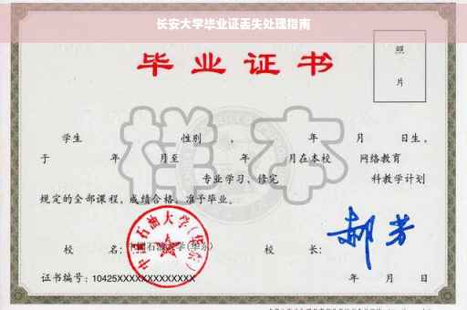 本文将详细介绍长安大学毕业证丢失的处理方法。针对毕业证丢失的情况,学校提供了明确的解决方案,包括及时挂失、申请补办等步骤。本文将指导丢失毕业证的学生正确处理这一问题,确保个人权益不受影响。提醒学生在日常生活中妥善保管重要证件,避免不必要的麻烦。