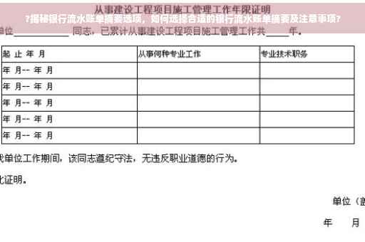 本文将围绕这一主题展开讨论,并介绍与银行流水账单相关的注意事项。