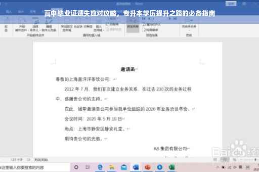 在办理相关手续的过程中,您可以咨询所在地的专升本招生部门,了解他们对于高中毕业证遗失的认可程度和具体要求,有些部门可能允许您提交其他替代证明材料,例如学业成绩单等,请务必提前咨询,以免耽误您的升学进程。
