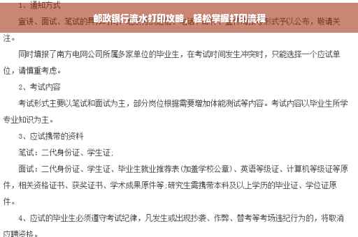 本文提供了详细的邮政银行流水打印攻略,希望能助您轻松掌握打印流程,为您的银行业务提供便利,如有更多疑问,欢迎咨询邮政银行工作人员或拨打客服电话,祝您业务顺利!