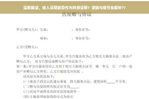 随着房价不断攀升,购房成为了众多人生中的重大事件,在购房旅程中,收入证明扮演了举足轻重的角色,收入证明究竟能否作为购房的充分证明?背后又隐藏着哪些逻辑细节呢?让我们深入探讨这一话题。