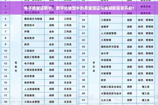 随着信息技术的飞速发展,数字化转型已成为各行各业不可或缺的一部分,在这一进程中,电子质量证明书作为数字化质量管理的重要工具,正受到广泛关注,电子质量证明书的应用不仅提高了产品质量管理的效率,同时也为企业带来了更多的商业机会,本文将详细介绍电子质量证明书的概念、特点、应用场景及其优势,帮助读者更好地了解这一新兴技术。