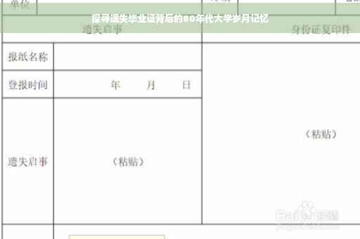 摘要:遗失的毕业证引发了对记忆中80年代大学岁月的探寻。那段岁月充满了青春活力和追求知识的热情,毕业证的丢失则唤醒了对那段时光的怀念。本文将带领读者一起回味那段美好的时光,感受大学岁月带来的温馨记忆。