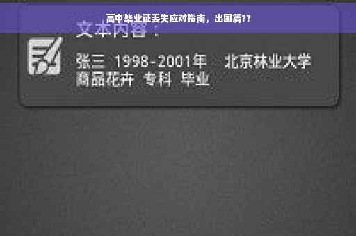丢失高中毕业证确实是一个棘手的问题,但只要你采取正确的应对措施,就能顺利解决,本文提供的详细策略和建议希望能帮助你走出这一困境,也希望你吸取这次教训,妥善保管重要证件,避免类似问题再次发生,出国前做好充分的准备和规划是非常重要的,这样才能确保你的留学之旅顺利无阻。若还有其他问题或需要帮助,请随时联系我。