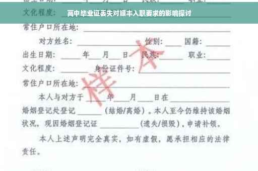 随着社会的飞速发展,学历作为评价个人知识结构和专业能力的重要参考因素之一,在求职过程中扮演着举足轻重的角色,有时因为各种原因,我们可能会遗失一些重要的证件,如高中毕业证,当面临高中毕业证丢失的情况时,我们是否还能顺利进入心仪的企业,如顺丰等大型企业呢?我们将就此问题展开深入探讨。