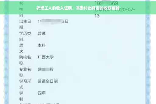 摘要:农场工人的收入证明展示了他们辛勤劳动的回报。这些工人每天辛勤耕耘,付出汗水和努力,为社会的粮食生产做出贡献。他们的收入证明了他们的辛勤付出背后的收获,也反映了农业产业的重要性。应该得到应有的尊重和合理的报酬,以激励更多的人投身于农业领域,保障食品安全和农业可持续发展。