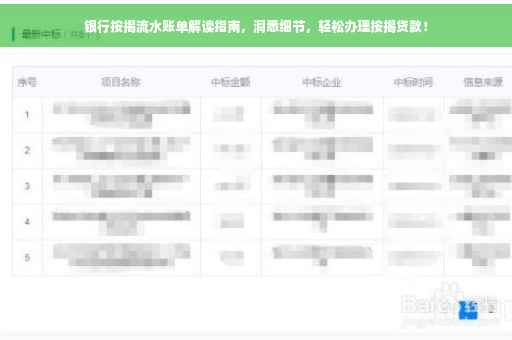 摘要:银行按揭流水账单解读指南,教你如何洞悉账单细节。通过本文,你将了解如何轻松查看银行流水账单,包括收入、支出及余额等重要信息。掌握这些技巧,将帮助你更顺利地办理按揭贷款,避免不必要的麻烦。
