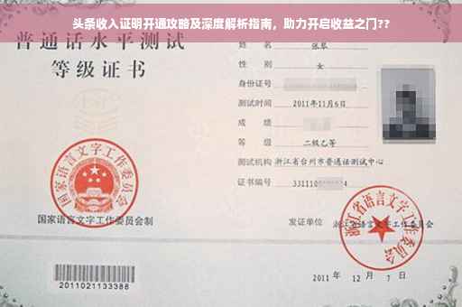 本文将为你提供头条收入证明的开通攻略及深度解析。从申请流程、所需材料到注意事项等方面,全方位解析如何顺利开通头条收入证明。内容实用,步骤清晰,让你轻松掌握开通技巧,实现个人收益最大化。阅读本文,你将了解到更多关于头条收入证明的细节和实用信息。
