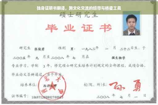 随着全球化的步伐加快,跨文化交流变得越来越频繁和重要,在这个过程中,语言作为沟通的桥梁,发挥着不可替代的作用,独身证明书作为一种重要的法律文件,在进行国际交流时,其翻译的准确性、专业性和规范性显得尤为重要,本文将探讨独身证明书的翻译问题,阐述其在跨文化交流中的意义和作用。