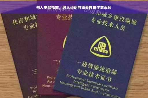 在当今社会,贷款已成为人们解决资金周转问题的一种常见方式,无论是购房、购车、创业还是应对突发情况,贷款都能为我们提供一定的资金支持,而在贷款过程中,收入证明是银行或其他金融机构评估借款人还款能力的重要依据,本文将围绕帮人贷款及收入证明的相关问题展开讨论,帮助大家更好地了解这一过程。