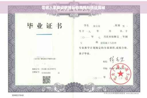 摘要:零收入家庭证明是一份揭示家庭经济状况的重要文件,背后隐藏着诸多真相与挑战。这份证明不仅反映了家庭成员的收入状况,更揭示了贫困、失业和社会不平等问题的存在。面对这些挑战,我们需要积极寻找解决方案,包括提供社会福利支持、加强就业培训和创造更多就业机会等,以改善零收入家庭的生活状况,促进社会公平和和谐发展。