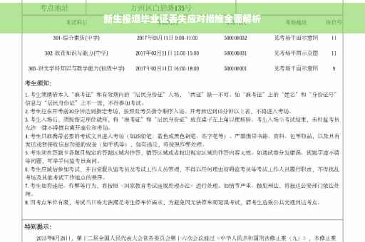 摘要:针对新生报道时毕业证丢失的情况,本文提供了详细的应对措施。学生应及时向学校报告并寻求帮助;了解相关政策和补办流程,准备必要的材料和证明;注意保护个人信息,防止被不法分子利用。本文旨在帮助丢失毕业证的新生迅速应对,减少不必要的困扰和损失。