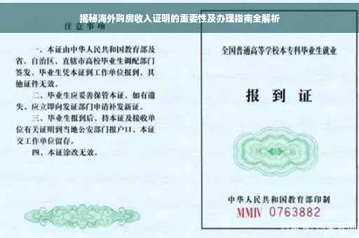 随着全球化的发展,越来越多的人开始梦想在海外购置房产,在购房过程中,收入证明是不可或缺的一环,本文将深入剖析海外购房收入证明的重要性,并为大家提供详尽的办理指南,助力大家实现海外购房梦想。