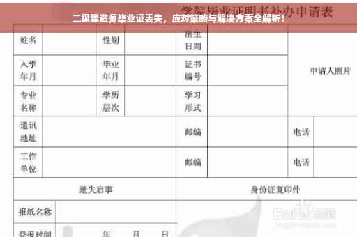 面对二级建造师毕业证丢失的情况,我们要冷静应对,按照正确的流程进行操作,为了预防类似情况再次发生,建议做好预防措施,妥善保管重要证件,希望这篇文章能为您提供帮助,如有更多疑问,欢迎咨询相关部门或专业人士。