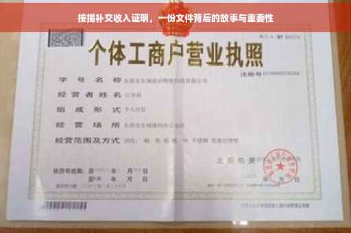 摘要:本文将介绍按揭补交收入证明的重要性及其背后的故事。这份文件对于许多人来说具有关键作用,因为它涉及到财务稳定和个人信用。本文将简要概述收入证明的作用,包括其在贷款申请和信用评估中的重要性,并探讨背后可能涉及的故事和情境,如经济压力、信用重建等。