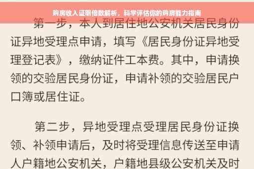 以李先生为例,他的月收入为2万元,计划购买一套总价200万元的房产,预期的房贷月供为每月1万元,李先生的购房收入证明倍数为2(2万元/1万元=2),这意味着他的收入能够覆盖房贷月供,具有较高的购房能力,通过了解和计算购房收入证明倍数,购房者可以更科学地评估自己的购房能力,从而做出明智的决策。