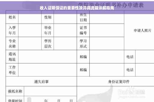 在当今社会,随着经济的发展和就业市场的繁荣,越来越多的人开始关注自己的收入证明问题,无论是申请贷款、办理信用卡、租房还是其他场合,收入证明都是一项重要的证明材料,本文将详细介绍收入证明保证的重要性以及开具收入证明的流程和注意事项,帮助大家更好地理解和运用这一重要文件。