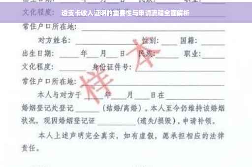 摘要:透支卡收入证明对于申请信用卡或贷款至关重要,它反映了申请人的还款能力和信用状况。申请流程包括准备相关材料,如身份证明、收入证明和信用记录等,然后向银行或金融机构提交申请。经过审核,如果申请人的信用评级和收入状况符合要求,即可获得透支卡。了解并正确申请透支卡收入证明,有助于个人财务管理和信用建设。