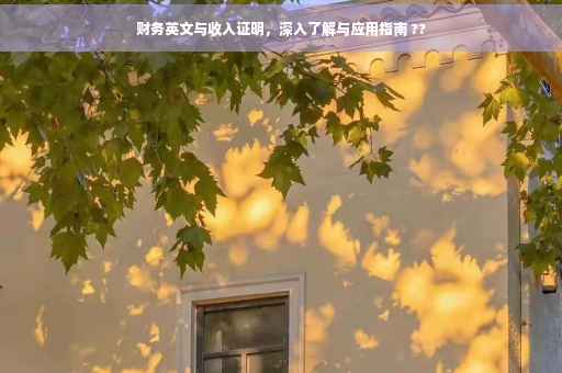 在当今全球化的时代,财务英文已成为职场人士必备的技能之一,特别是在涉及收入证明这一重要环节时,掌握财务英文的表达方式显得尤为重要,本文将详细介绍财务英文与收入证明之间的关系,帮助读者更好地理解和应用相关知识。