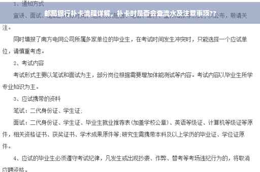 在补卡过程中,邮局银行可能会查询客户的账户流水信息,这是为了确认卡片丢失或损坏的原因,以及确保补卡业务的真实性,查询流水还有助于银行识别潜在的风险和防止诈骗行为。