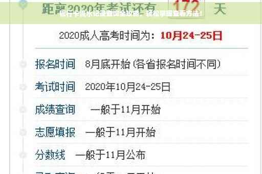 通过以上介绍,您应该已经掌握了如何在银行卡上查看流水记录的几种常见方法,无论是网上银行、手机银行、ATM机还是银行柜台,都可以轻松查询到银行卡的流水记录,请根据您的实际情况选择合适的方法进行查询,并注意保护个人信息和及时处理异常记录,希望本文能对您有所帮助。