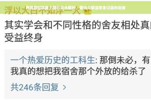 摘要:本文将详细介绍购房首付款网上银行流水的查询与解读过程。通过本文,您将了解如何顺利获取并理解资金流水记录,包括注意事项和常见问题解答,帮助您更好地掌握个人财务状况,顺利购房。