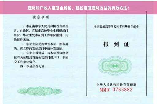 摘要:,,本文将详细介绍理财账户收入证明的重要性及其有效证明方法。通过清晰阐述理财收益的概念和证明方式,帮助读者了解如何妥善展示个人理财成果。文章将涵盖理财账户收入证明的具体步骤、注意事项及有效展示理财收益的技巧,旨在帮助投资者在财务规划和证明过程中更加得心应手。