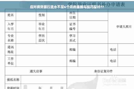 摘要:面对房贷银行流水不够6个月的问题,可以通过多种方式巧妙应对。可提供其他证明资料如工资单、个人所得税纳税证明等,以证明收入稳定性。可考虑增加共同借款人或提供担保人,提高贷款通过率。提前规划并优化个人财务流水,如调整资金结构、确保定期存款等也是有效方法。针对银行流水不足的问题,应结合自身实际情况采取相应措施,确保房贷申请顺利获批。