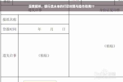 摘要:文章解析了银行流水单的打印时间范围。根据不同银行的规定,个人或企业可以拉取不同时间段的银行流水单,一般包括最近几个月至半年或一年的时间。文章详细阐述了不同情况下如何获取银行流水单的方法,并提醒注意打印时的细节。具体打印时间需根据银行规定而定。