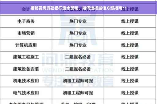 随着房价不断攀升,购房已成为许多人的重要决策之一,在购房过程中,贷款成为了大多数人的选择,而在申请房贷时,银行流水作为评估个人还款能力的重要依据之一,其重要性不言而喻,本文将深入探讨银行流水在购房过程中的作用,并引导读者如何选择最适合自己的银行流水方案。