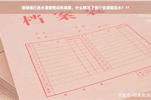 在银行业务中,我们经常听到关于银行流水调查的说法,当个人或企业办理贷款、信用卡或其他金融业务时,有时会遇到银行要求提供银行流水账单的情况,银行流水调查是银行业务中的一项重要环节,本文将围绕这一主题展开,深入解析银行流水调查的背后原因与情境。