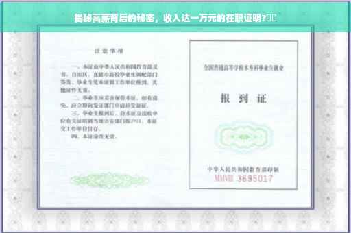 摘要:在职证明收入达一万元,揭示高薪背后的秘密。通过个人的努力和专业技能,实现了高收入的目标。本文将介绍如何通过不断学习、提升技能、拓展人脉等方式,在职场中脱颖而出,获得高薪工作的机会。也提醒读者在追求高薪的同时,要不断提升自己的综合素质,保持职业素养和敬业精神。