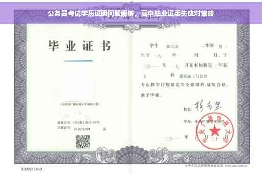 关于公务员考试中的学历证明问题,如果高中毕业证丢失,考生不必过于担心。一般情况下,可以通过其他方式来证明自己的学历,例如提供成绩单、学历认证报告等。具体解决办法可咨询相关考试机构或教育部门,以确保顺利参加考试。