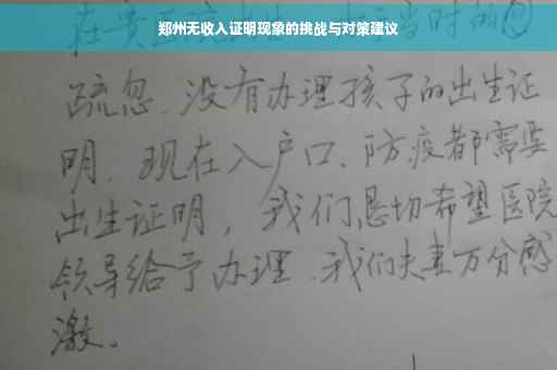 近年来,随着社会经济的快速发展和就业形势的不断变化,越来越多的人面临无固定收入或收入不稳定的问题,特别是在郑州这座蓬勃发展的城市,许多人在面对职业转型、创业失败、临时失业等挑战时,无法提供传统的收入证明,这种现象不仅影响了他们的日常生活,也给他们的心理健康和社会融入带来了难题,本文将深入探讨郑州无收入证明现象的背景、原因、影响,并提出相应的对策和建议。