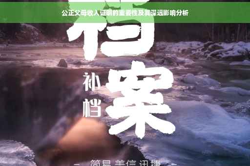 本文旨在详细介绍公正父母收入证明的概念、作用及其对个人和家庭的影响,随着经济的发展和社会的进步,越来越多的人开始关注个人信用和家庭财务状况,公正父母收入证明作为其中的一个重要环节,逐渐受到广泛关注。