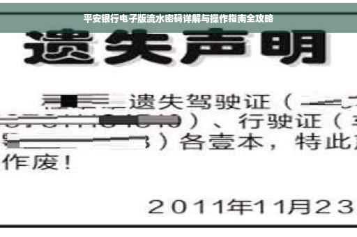 本文详细介绍了平安银行电子版流水密码的设置、操作及安全注意事项,希望广大客户能够充分了解并正确使用平安银行电子版流水服务,确保账户资金安全,在使用过程中,如有任何问题,可及时联系平安银行客服人员,获取帮助与支持。