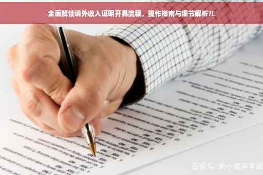 随着全球化的发展,跨国企业、海外投资、跨境电商等领域的兴起,使得越来越多的人开始产生境外收入,在这种情况下,境外收入证明开具成为了办理签证、申请贷款、税务申报等场合的必备手续,本文将详细介绍境外收入证明开具的流程、注意事项以及常见问题解决方案,帮助读者顺利完成这一手续,确保个人或企业在境外的合法权益得到保障。