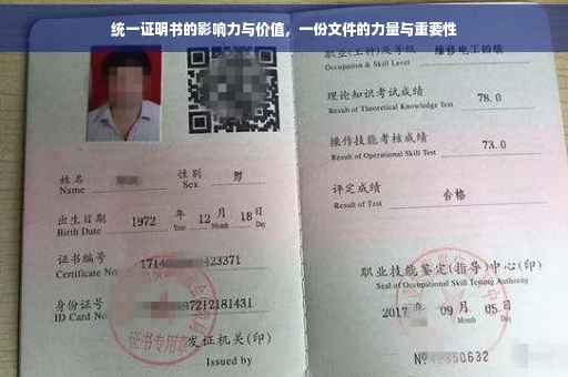 统一证明书作为具有权威性和公信力的文件,在社会生活中发挥着重要作用,我们应充分认识到其重要性,加强对其的管理和规范,以发挥其更大的作用,为社会的发展做出更大的贡献。