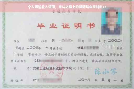 摘要:,,本篇文章主要关于个人运输收入证明,展现了奋斗在路上的坚韧与骄傲。内容涵盖了个体在运输行业的收入状况,以及面对挑战时所展现出的不屈不挠的奋斗精神。通过这篇文章,读者可以了解到个体在运输领域的辛勤付出和取得的成就,以及他们所展现出的自豪和骄傲。