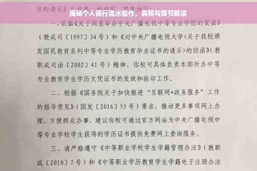 随着互联网金融的快速发展,银行业务日益繁荣,个人银行流水成为了越来越多人关注的焦点,不少人在办理贷款、信用卡等金融业务时,都会被要求提供银行流水证明,个人银行走流水究竟是怎么回事?本文将对此进行详细介绍。