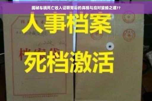车祸无情,给人们的生命和财产安全带来巨大威胁,当车祸导致死亡时,收入证明成为了处理后续事宜的重要一环,本文将围绕车祸死亡收入证明这一主题,深入探讨相关的法律、财务和人情问题,揭示背后的真相,并为大家提供应对之策。